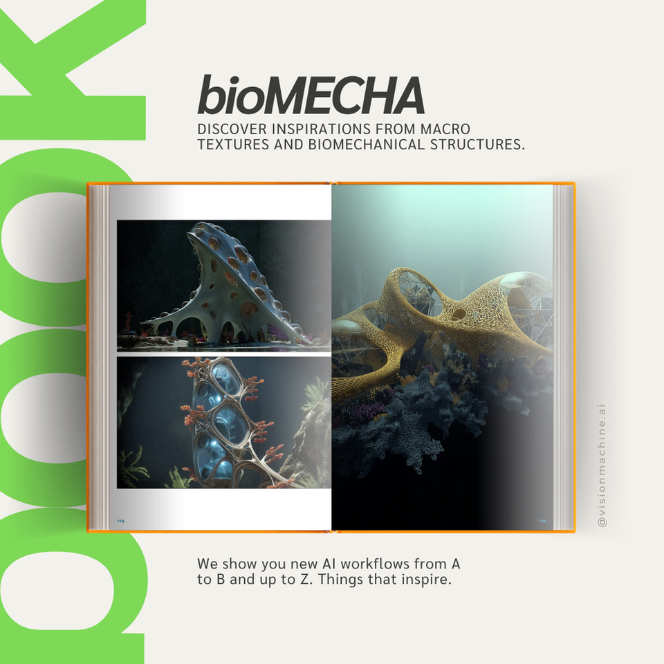 “Form follows function” is turned on its head when we combine biology and visual AI aesthetics. It´s neither strictly organic nor strictly engineered. Instead, it exists as in-between space where organic forms can become something new, a series of case studies showing how to train creative thinking in new ways, transforming technical innovations to a new striking visual language. This book takes you on a journey of AI-generated bio-mechanical structures on 135 pages - a beginning to reshape the way researchers, architects, designers, and creatives could understand and use form and function. From textures over fashion design to urban architectural concepts and Reverse AI techniques, a perfect guide for creativity training.